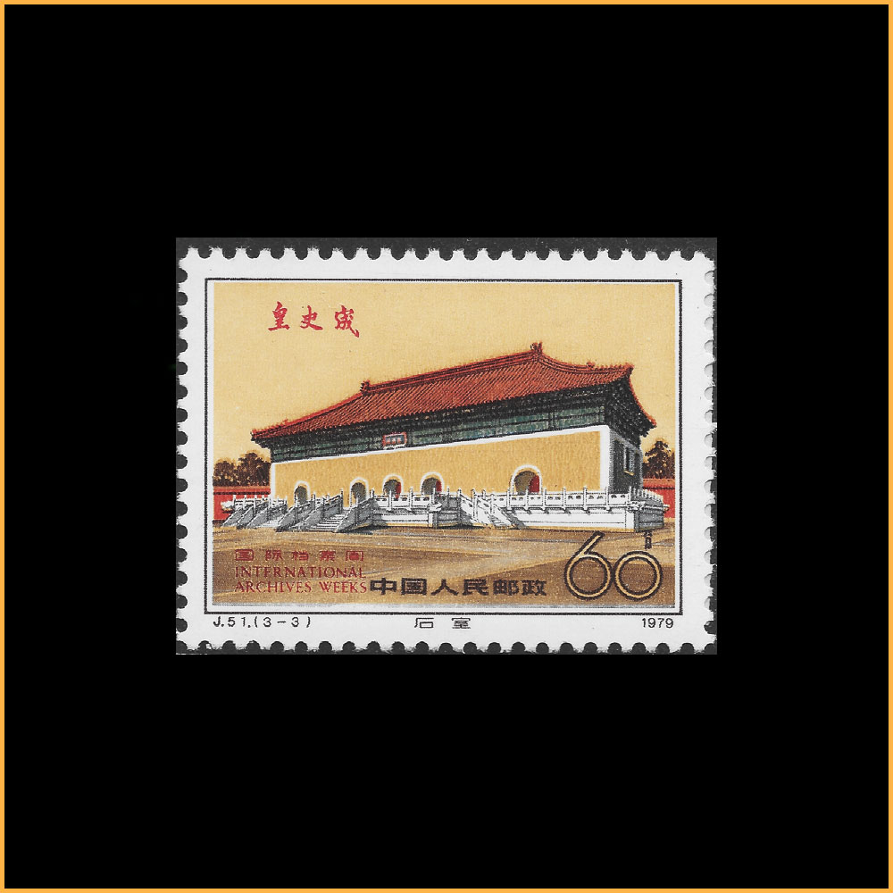 在1979年11月26日,为了纪念国际档案周,设计师孙传哲设计了一套题为“J51 国际档案周”的特别纪念邮票。这套邮票全套共有三枚,都采用了彩色影写版印刷技术,背面都刷有胶水。邮票中第一枚和第三枚的尺寸相同,为40×30毫米,而第二枚则为30×40毫米大小,不同寸法反映出设计的独特性。邮票的齿孔度数统一为11度,展现了精致的工艺。